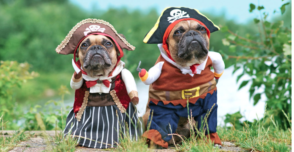 Transform your pet into a paw-rfect pirate with a cute bandana, eyepatch, or a mini pirate hat. If ye be brave enough, a striped shirt or faux parrot perched atop their back can add to the fun! [Find these treasures here!]